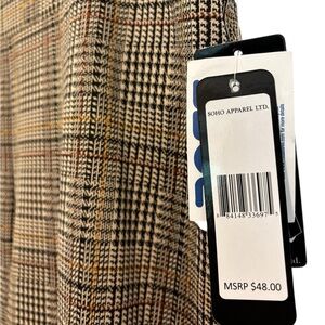 Soho Apparel Plaid Gray Brown Stretch Trousers in Brown and Black, Size L