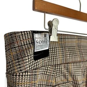 Soho Apparel Plaid Gray Brown Stretch Trousers in Brown and Black