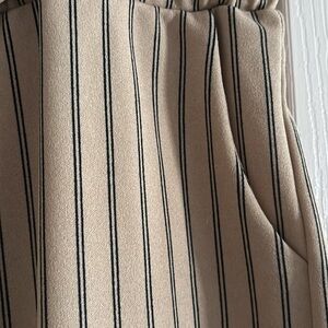 Chic pants with a paperbag waist. Features a stylish tie belt and vertical stripes.