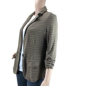 Soho Apparel Women's Brown Chevron Ruched Sleeve Notched Lapel Blazer Jacket S