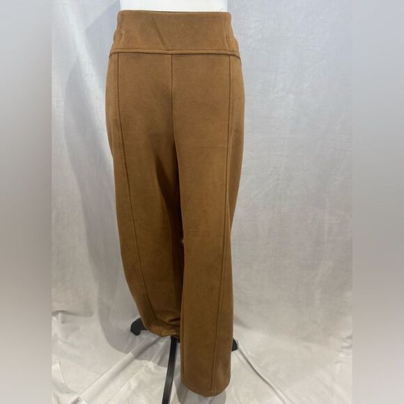 Faux suede pants with wide elastic waist for flattering hold. Euc