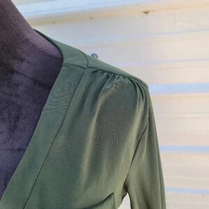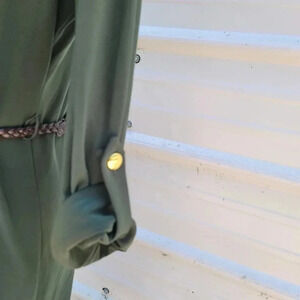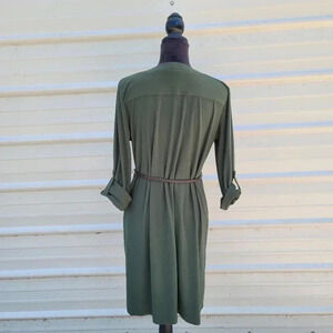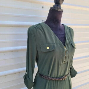 Soho Apparl Tunic Shift Convertible Sleeve Dress Green Stretch Belted Petite L