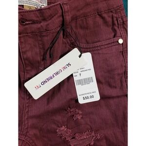 Soho Babe Jeans Sz 7 Womens Red Mid Rise Skinny Distressed Stretch Ladies NWT