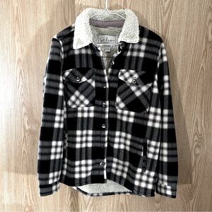 Soho Black and Cream Plaid Brushed Fleece Sherpa Lined Button Down Shirt Jacket