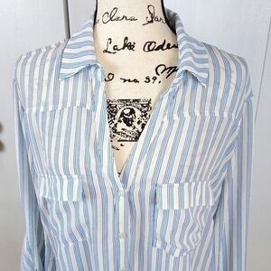 Soho Blue/White Striped lightweight Semi-Sheer Blouse Leisure Vacations Sz.XXL