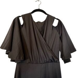 Soho Chic Surplice Flutter Sleeve Cold Shoulder One Piece Jumpsuit Black Small