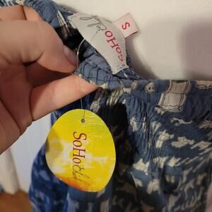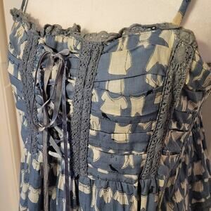 Soho Chiek, S | Babydoll Boho Corset Lace Laundry Print Mini Dress NWT