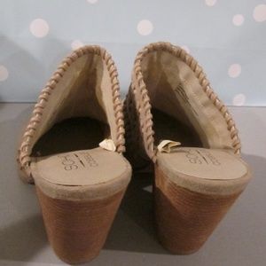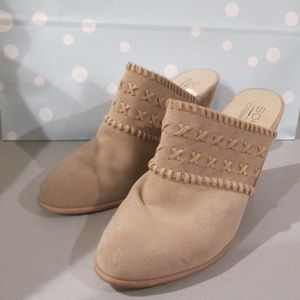 Soho Cobbler Dhyana Woven Suede Tan Clog Mules Shoes 4" Block Heel leather sz 9