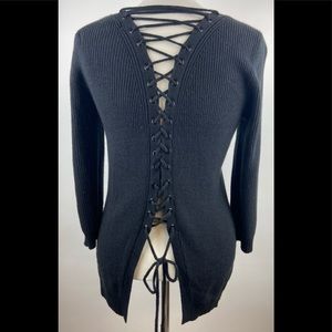 Soho NY & Co Jeans Acrylic Sweater 3/4 Sleeves- Lace-up Back - Medium. Condition is used.