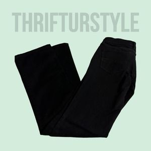 Classic bootcut jeans in a versatile black wash, featuring a flattering low rise silhouette. These jeans are designed with a traditional five-pocket styling and a comfortable fit, perfect for everyday wear. Their bootcut leg adds a touch of elegance, making them ideal for pairing with boots or heels. A staple for a casual day out, running errands, or a relaxed evening with friends.