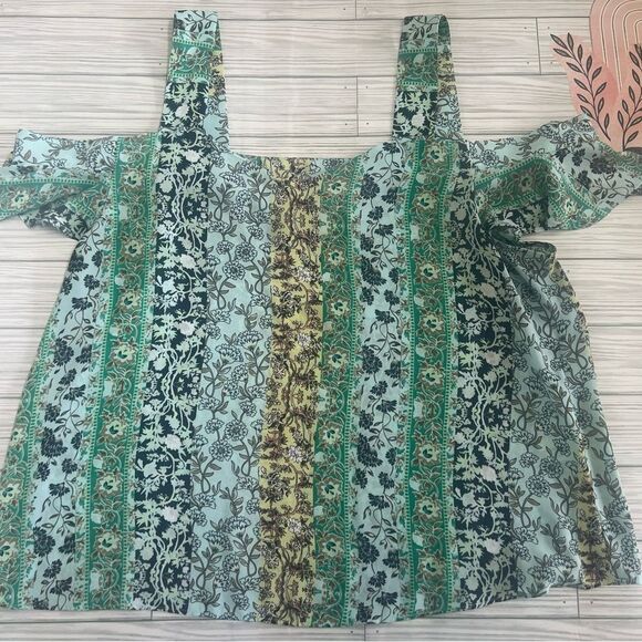 Soho Jeans Floral Green Off-Shoulder Top, cold shoulder, boho