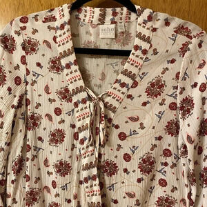 Soho Jeans New York & Company Women’s Long Sleeve, V-Neck Floral Print w/ Tie - Size Small