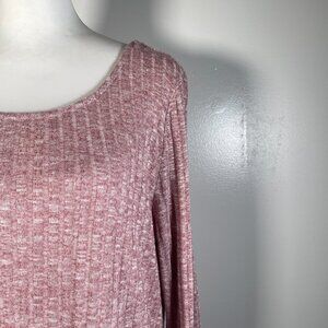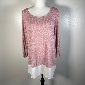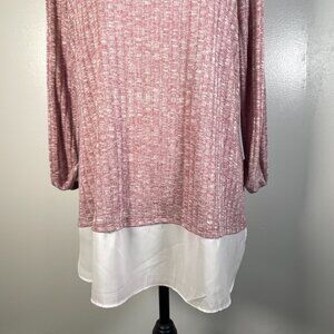 Soho Jeans Pink White Marled Wide Neck Shirtail Tight Knit 3/4 Sleeve Sweater XL