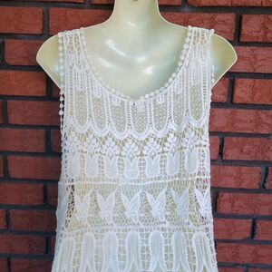 Soho Lady Y2K Crochet Tank Top Plus Size Cream Boho Butterflies Floral Festival