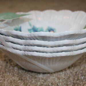 Soho Loft Blue Flower Scalloped Set of 4 Melamine 8" Cereal Bowls White NWT