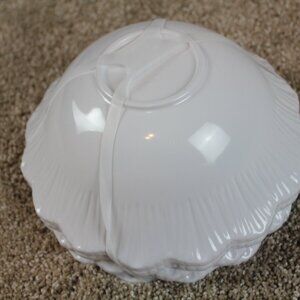 Nice 4-piece set of indoor/outdoor melamine bowls by the brand Soho Loft. They are brand new in packaging. Dishwasher safe on top rack only. They are not microwave safe. BPA free. Measure about 8" across at the top widest point and about 2.5" tall. Pretty beaded textured scallop edge. So pretty!