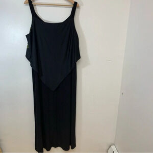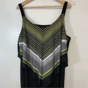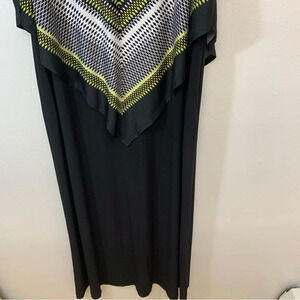 Soho Maxi Dress 2X Overlay Strappy Black Green Print Stretch Knit