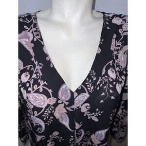 Soho New York & Company Jeans Top Women's Sz XL Floral Print Long Sleeve Blouse