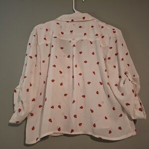 Chic white blouse featuring a playful ladybug print. Perfect for casual outings.