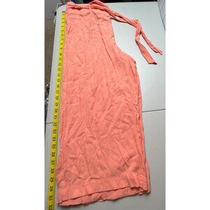 Lightweight coral pants with a relaxed wide-leg fit and an elastic waistband. Designed with tie accents for added elegance and flexibility.