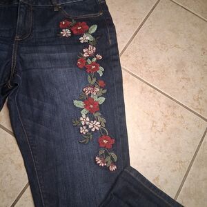Soho Relaxed Boyfriend Women 12 Embroider all over Floral Blue Ankle Denim Jeans