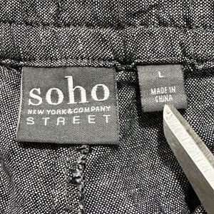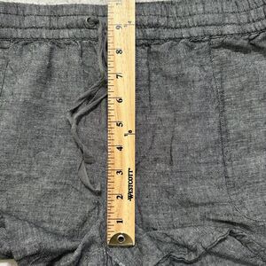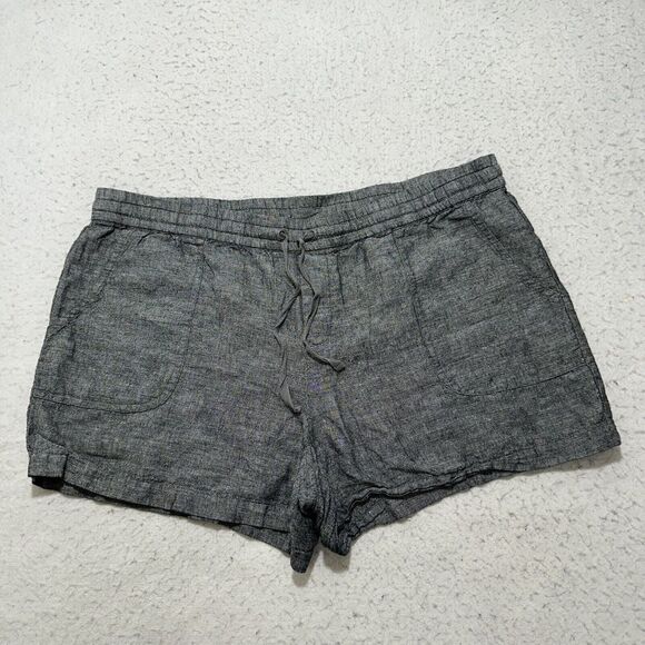 Great condition Soho Street (New York & Company) linen blend 3" inseam drawstring shorts in a women's large in a solid gray color.
