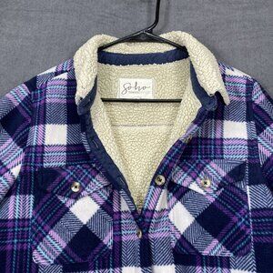 Soho Threads Plaid Sherpa-Lined Button-Up Jacket Pockets Womens Size Medium