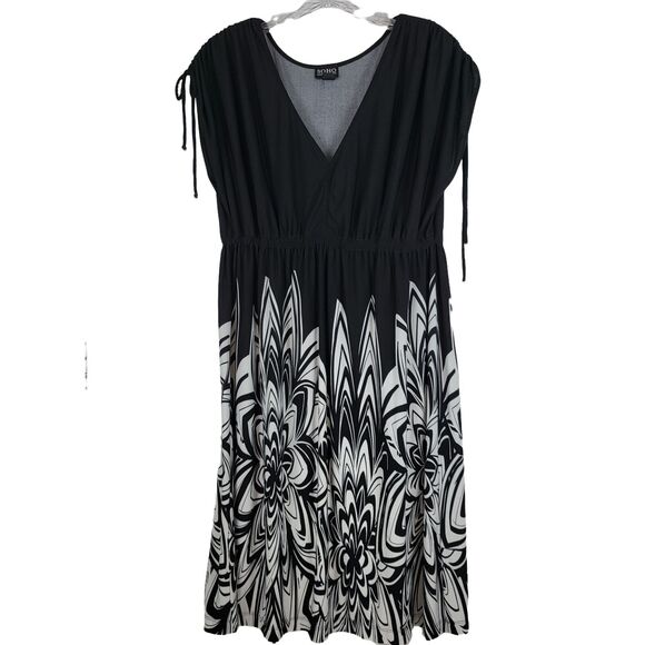Soho Women's Waist Defined Dress V-Neck Tie Shoulder Black & White Floral Size 16