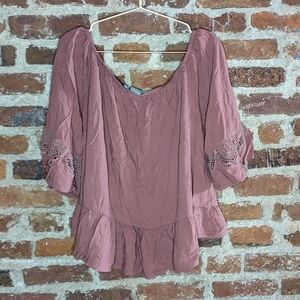 Soho XL Dusty Rose Wide Neck / Off the Shoulder Lace & Ruffle Top