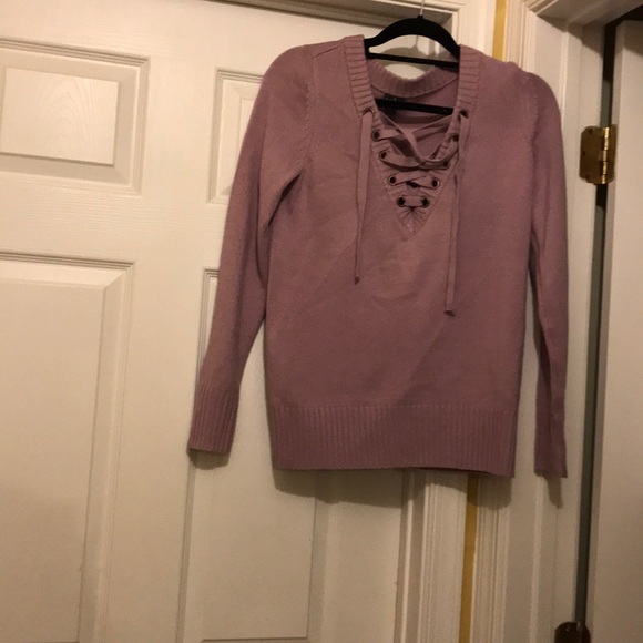 Lavender purple top, with criss cross detailing.