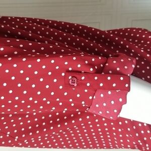 Keywords: Soho Jeans New York & Company Red Polka Dot Half Button Popover Lightweight Blouse