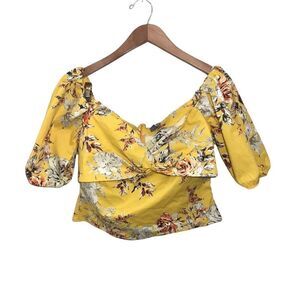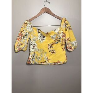 Soho New York Company Off Shoulder Top Medium Cropped Boho Floral Yellow NWT