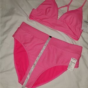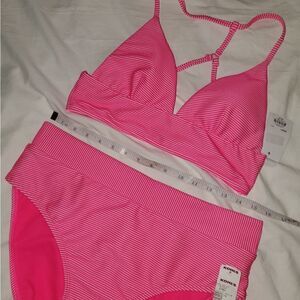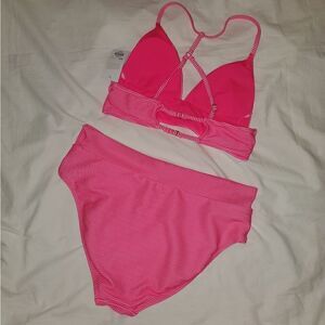 So. Hot Pink ribbed, high waist, racerback bikini set. Bottoms size XL. Top size Large. NWT