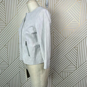 Soia + Kyo Collarless Zip Front Suede Jacket Gray Size US Small
