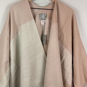 Soia & Kyo Poncho Women's One Size Beige Pink Colorblock Fringe Wrap Scarf NWT