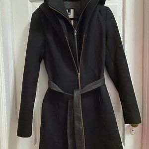 Soia & Kyo hooded wool blend coat with belt and interior vest — Black