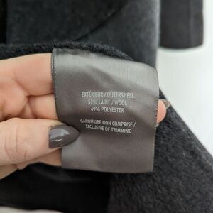 There's a button on one side but nothing to attach it to, not sure if there used to be a button hole for it somewhere but it no longer is there. Aside from this gently worn, great condition, no holes/stains.