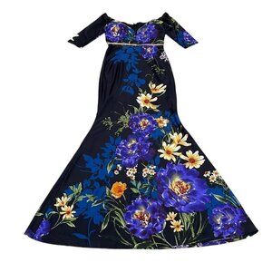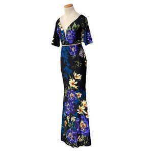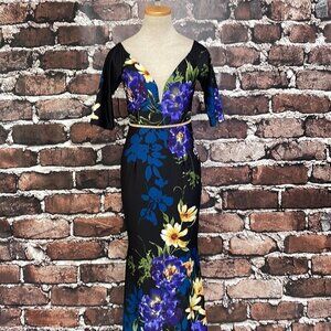 Soiéblu NWT Mermaid Gown V Neck Short Sleeve Dress Black Violet Size Small S