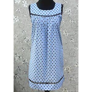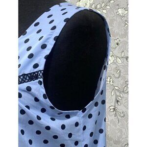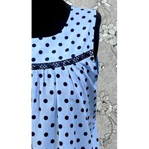 Add a touch of playful charm to your nights with this SoieRose Victorian-inspired nightgown. Crafted from breathable 100% cotton, it features a cheerful blue polka-dot print with delicate black lace accents. The sleeveless cut and relaxed fit make it ideal for warm weather while maintaining timeless vintage elegance.