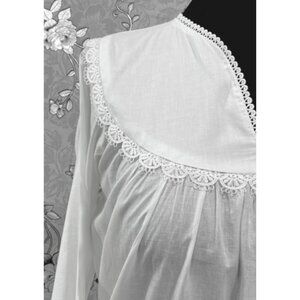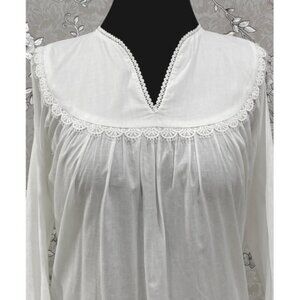 Experience timeless comfort in this SoieRose Victorian nightgown, crafted from soft 100% cotton. Its classic design features delicate lace trim around the neckline and cuffs, gently gathered pleats, and a relaxed drape for a graceful silhouette. Designed for elegance and ease, this nightgown evokes old-world charm while ensuring modern comfort.