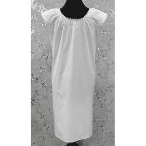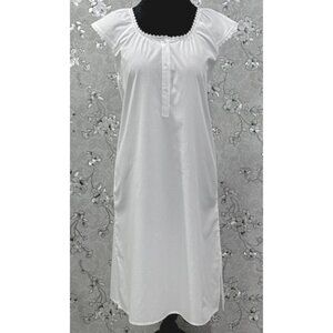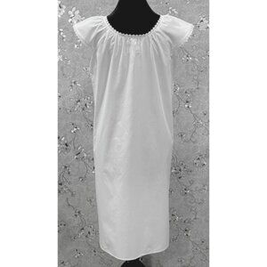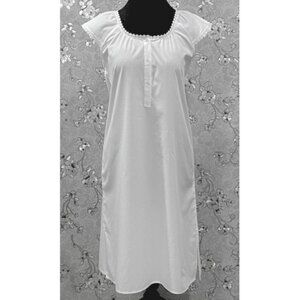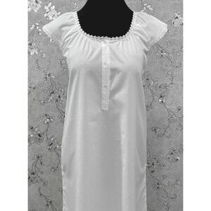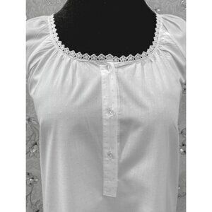 Indulge in vintage elegance with this SoieRose Victorian-style nightgown, beautifully crafted from 100% pure cotton featuring a delicate white base with soft blue dotted weave. The gown is accented with dainty lace trim along the neckline and cap sleeves, adding a feminine, timeless charm. Perfect for warm nights, it offers both comfort and sophistication, making it ideal for lounging or restful sleep.