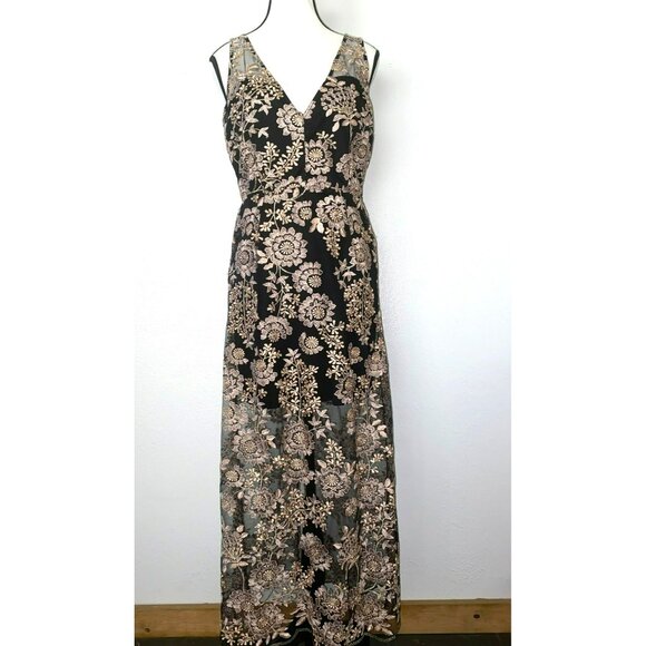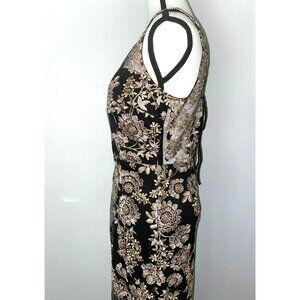 Soieblu Black & Pink/Gold Floral Embroidered Maxi Dress L