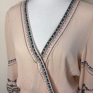 Soieblu Pale Peach Embroidered Rayon Wrap Look Top