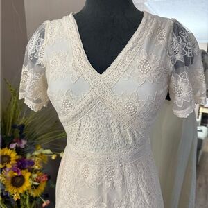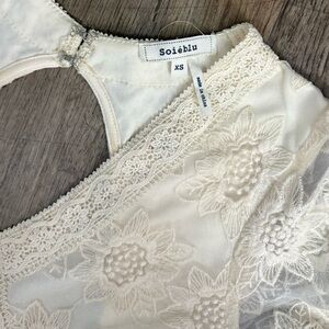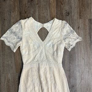 Soieblu • Short Sleeve V-Neck Mixed Lace Sheath Dress