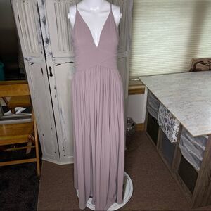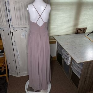 Soieblu Taupe Gray Pleated Pro Maxi Dress with Criss Cross Back Size Medium