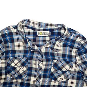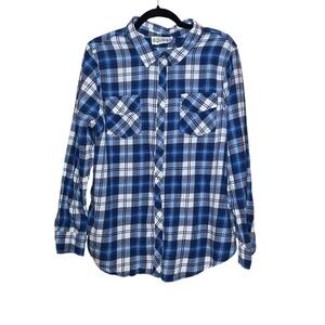 Sojara Michigan Wolverines Blue Plaid Flannel Shirt Size Large XLarge size tag is missing size is approximated please reference measurements to ensure a proper fit