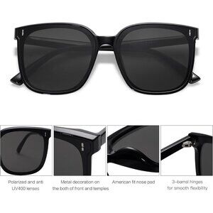 Sojos Retro Square Polarized Women Black Trendy Oversized frames Sunglasses