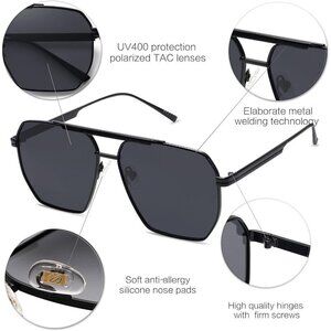 Sojos Retro Square Polarized Women Black Vintage Shade Classic Metal Sunglasses
