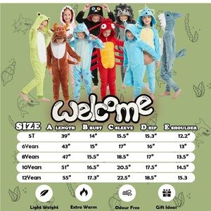 Transform your little one into their favorite character with this adorable WEQJC flannel animal onesie costume. Perfect for Halloween festivities, Christmas celebrations, or dress-up playtime, this versatile costume brings imagination to life for both boys and girls. The one-piece design makes it easy to put on and take off, while the soft flannel material ensures your child stays comfortable throughout their adventures. Whether they're trick-or-treating, attending a costume party, or engaging in pretend play, this charming costume will make them stand out. The playful animal-themed design adds an extra touch of whimsy that kids love. Suitable for various occasions and seasons, this costume combines fun and functionality, making it a delightful addition to your child's dress-up collection.