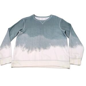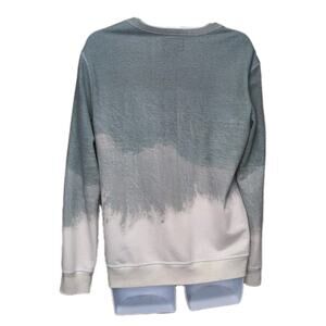 Sol Angeles Fleece Top Mens L Green Ivory Drip Dye Pullover Crewneck Sweatshirt